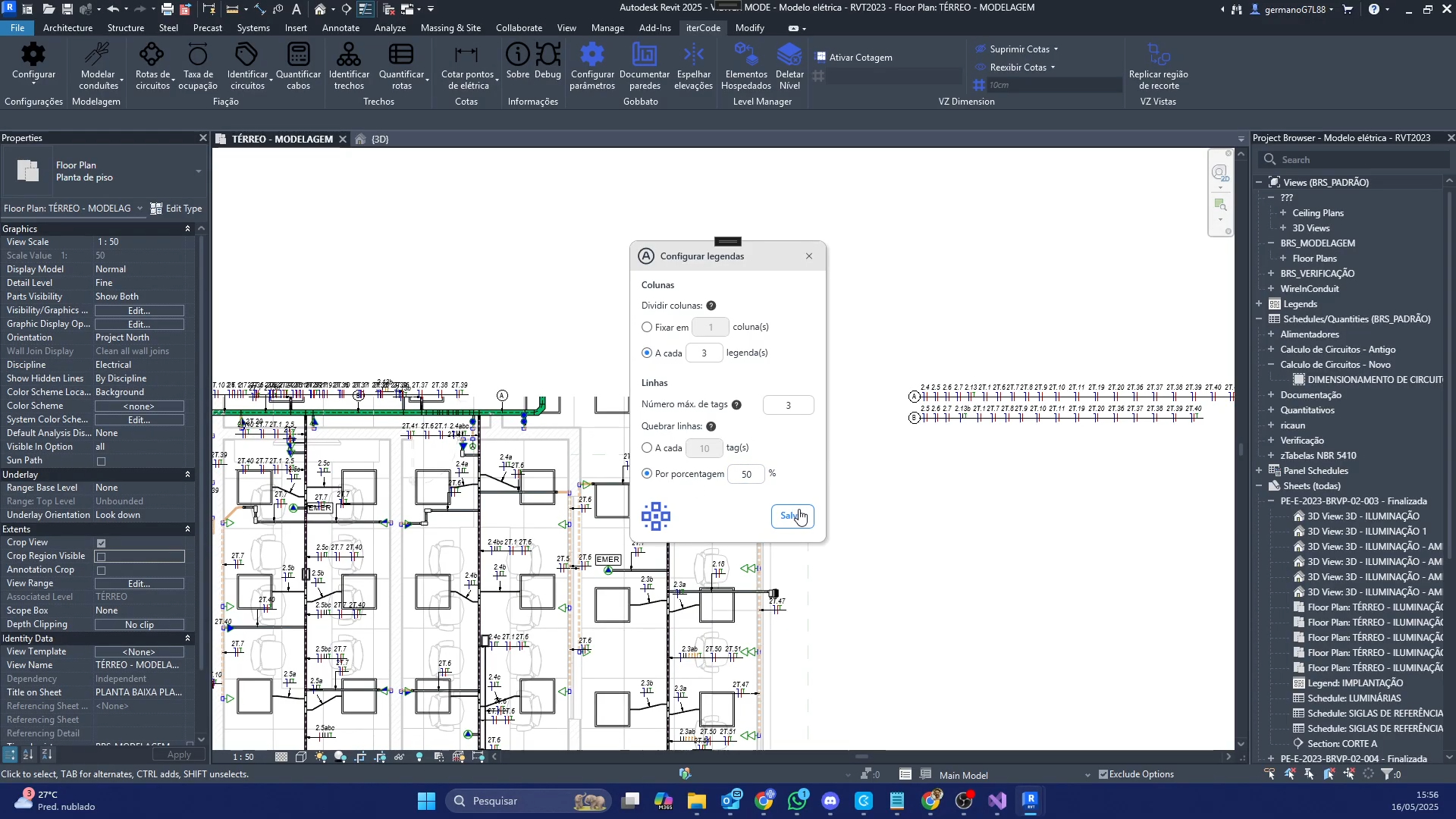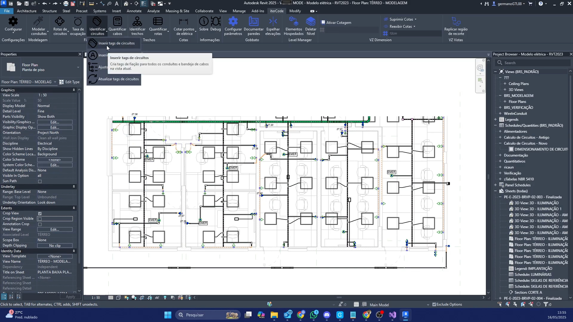 Esta funcionalidade específica foi criada com o intuito de automatizar o processo de criação de tags de circuitos. A ferramenta identifica em cada trecho de conduíte ou bandeja os circuitos registrados pela funcionalidade de distribuição de rotas. Com as informações coletadas, a ferramenta insere automaticamente os identificadores de cada circuito passante, de acordo com os padrões adotados pela empresa. Há também opções de personalização para acumulação de tags e criação de legendas.